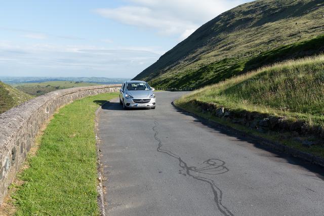Thursday june 23 : this room is really great : it's quiet, sheets and towels smells very good, the shower gel too ! The duvet is very cozy ! We wake up at 6:30 am for a breakfast at 7. The hostess asks us what we want. It's irish style : sausage, bacon, black ans white pudding, eggs, beans with tomato sauce, toasts, marmalade, coffee, hot chocolate and orange juice. The lady is more talkative this morning. She explains that on the Booking website, the adress of the B&B is not good and while she asks to change, they never did it ! In a book in our bedroom, we saw that we are 5 minutes away from a «magic road». We ask where it is. We leave at 8:20 am to see this magic road. At the Spolga Dam, we have to take down the small road that goes to the dam and stop before the gate but not to close. We stop the engine and the car starts to go up the slope ! Incredible !