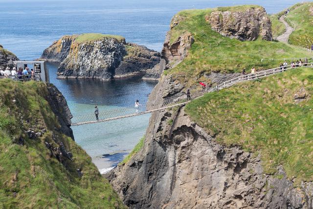 It's full of people. We take a lot of pictures. The sky finally cleared and the weather is nice and warm (28 °). Then we go to Carrick a rede bridge. The entrance fee is £ 5.90 per person. There are a lot of people here too. We walk 1km to go to the rope bridge.