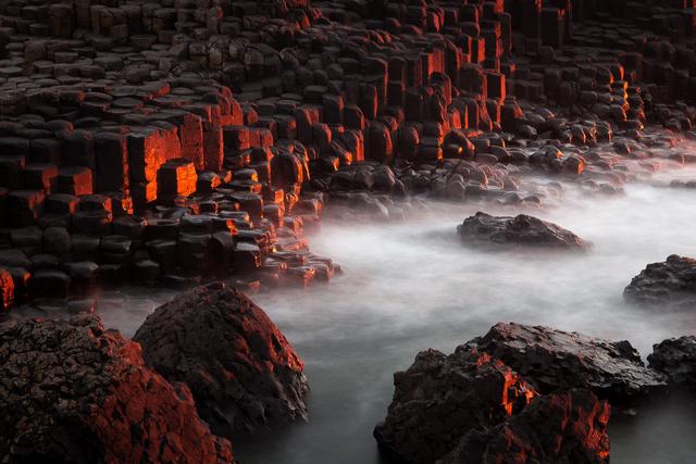 The view of the coast and its turquoise waters is magnificent. You have to wait in line to cross the bridge which must make 20m. It is high ! We take a walk on the island and we leave. A bit pricey for what it is! We go back to Dark Hedges. But it is not top in the sun, not easy for the pictures. At 5 pm, we take the road to Dunluce Castle. The visit to the castle costs £ 5, but access to the castle is free. There is not much to see. In addition, a tower is under construction. We go back to Coleraine to do some shopping and then eat at 7 pm in the restaurant of the hotel. A lot of people, definitely! So the service is a bit long. At 8:35 pm, we take the car to go to watch the sunset on the Giant's Causeway. There is a band of clouds so the sunset is average. The rocks light up very lightly.