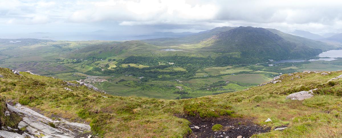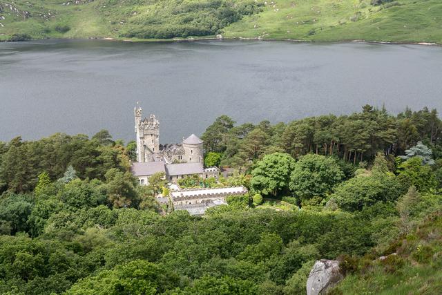 It's worth the pain. In the distance we can see Kylemore Castle and Abbey with the lake. It took us 240. The descent is hard for the knees. We offer ourselves an ice cream once at the bottom !