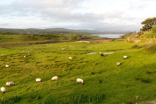 It's nice, very green but very covered in the sky. There are many sheeps. We return to our car and stop to take pictures of the green hils. The landscape looks like the one in the movie "The Lord of the Rings".