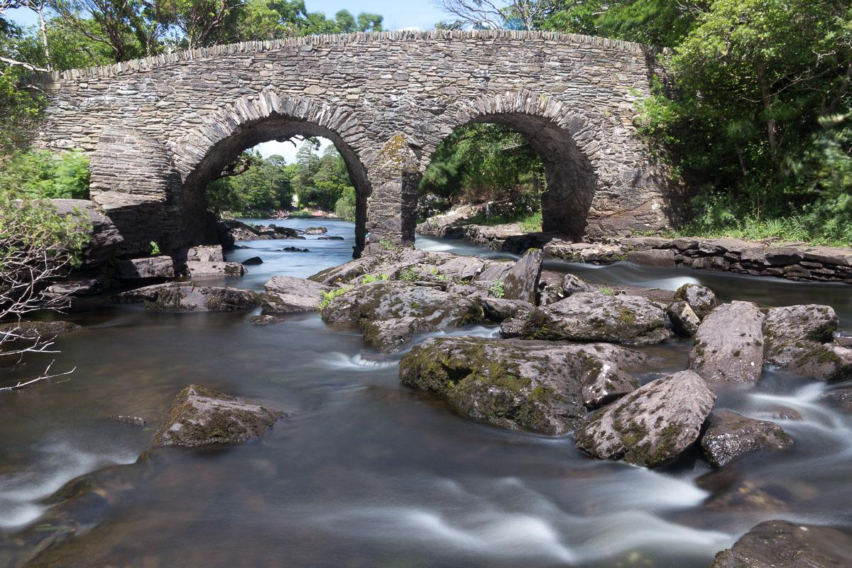We climb a little on the side of the waterfall but there is no view from above, only on the lake. In the early afternoon, the rain stops. We take the opportunity to walk up to Old Weir Bridge (4kms round trip). The stone bridge is beautiful.