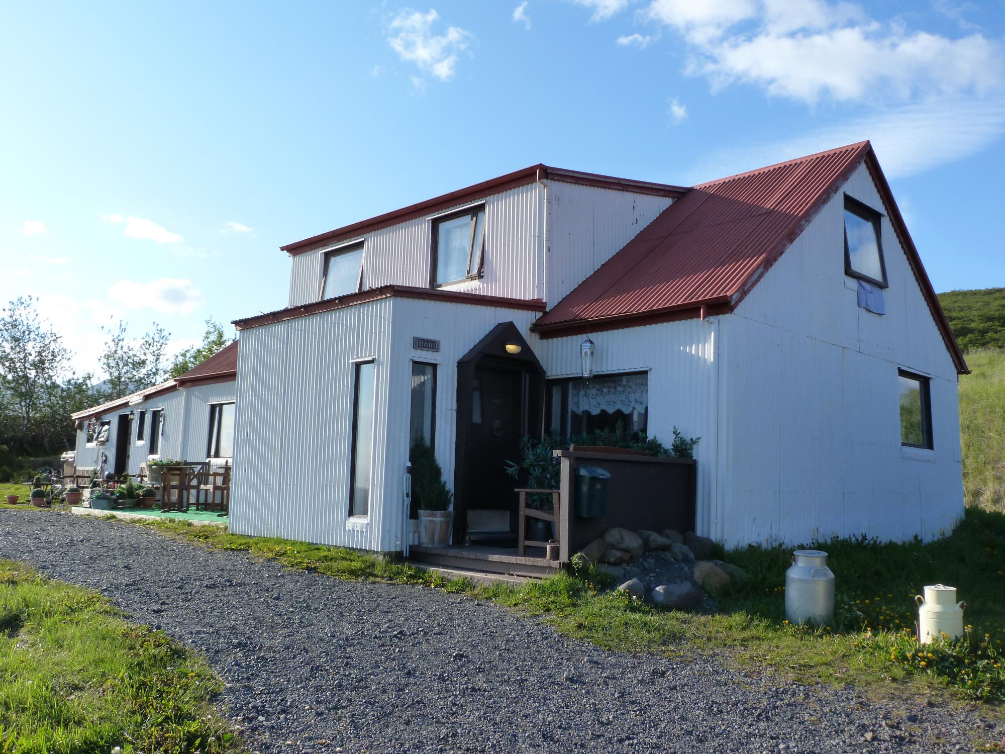 Pas d'un grand intérêt. On repart ensuite pour Godafoss. Autre cascade impressionnante. Puis direction Akureyri avec un arrêt photos à Laufas : petit site de maisons faites en tourbe et toit végétalisé. Lors de notre arrivé à l'auberge de jeunesse d'Akureyri, la réceptionniste nous indique qu'il y a eu un problème avec notre réservation. S'en étant rendu compte à temps, elle nous a réservé une chambre dans une Guesthouse en ville : Gula Villan. Nous pensons être gagnants car nous n'avons pas eu de bons échos sur l'auberge de jeunesse. La guesthouse étant, quant à elle, très bien mais encore une fois avec peu de salle de bain. Le soir, on va manger au restaurant Greifinn.