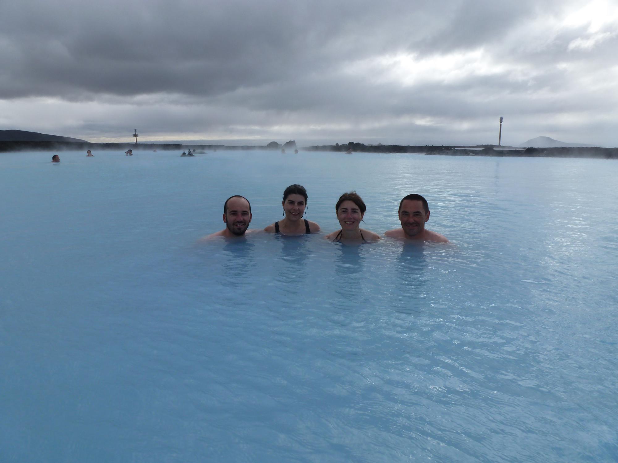 C'est trop bien mais un peu plus cher et moins chaud qu'à Myvatn. On trempe pendant ~2h00 puis en soirée, on va manger un morceau dans un Subway sur la route de Keflavik. On ramène la voiture au loueur vers 10h45. C'est très rapide, on dépose les clés, ils ne font même pas le tour de la voiture. La navette nous emmène à l'aéroport. On décolle vers 1h00 du matin pour arriver à 6h30 à Paris. Les vacances sont finies ! Vivement les prochaines