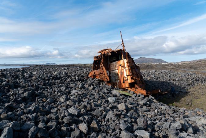 Quelques mètres plus loin, il y a une carcasse de bateau échoué en 1988.