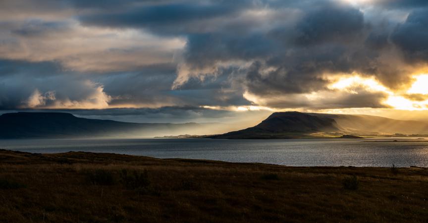 Dimanche 18 septembre : debout à 6h00 car la météo s’annonce pas ''trop mal''. Départ à 7h15. Il fait quand même frais et venteux. On va vers le nord de la Péninsule de Snaefellsnes. Premier arrêt photo en cours de route sur le lever de soleil.