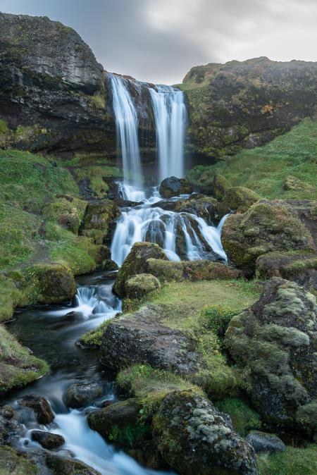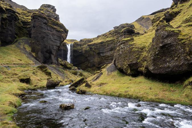 On va prendre un chocolat chaud au restaurant du site. Pendant un arrêt de la pluie, on file voir sa voisine Kvernufoss moins célèbre mais superbe dans son petit canyon verdoyant.