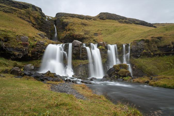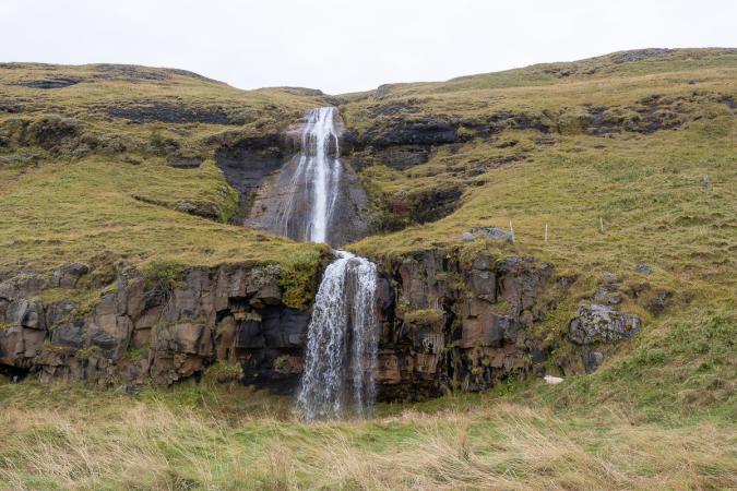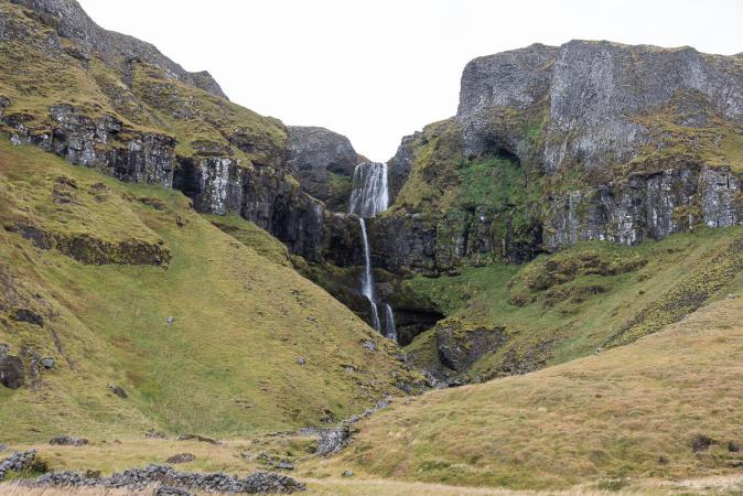 Puis, on va à Gluggafoss. Elle est superbe avec ses trois petites cascades et la grande au-dessus.