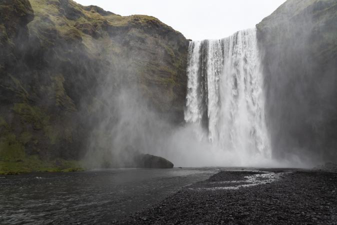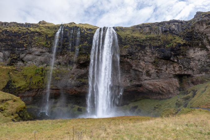Ensuite, on file à Seljalandsfoss. Là, il y a pas mal de monde, c'est très touristique. D’ailleurs, le parking est payant (700 isk la journée, 5€). Un gentil monsieur nous offre son ticket de parking. Seljalandsfoss est une des cascades les plus connues d’Islande. On peut passer derrière si on ne craint pas d’être mouillé !