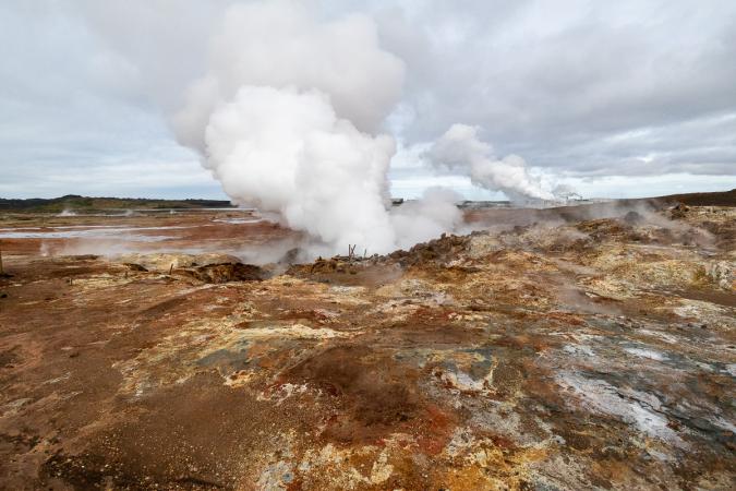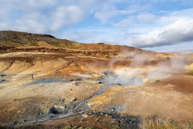 On file ensuite voir la zone géothermique de Gunnuhver. C’est assez petit mais ça « glougloute » pas mal !