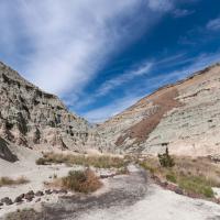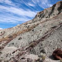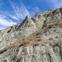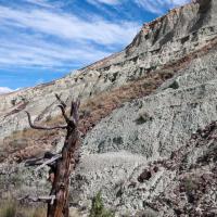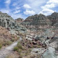 Deuzième site de John Day totalement différent de Painted Hills. Ici, la montagne est de couleur surprenante : verte, bleue. Ce site est riche en fossiles protégés sous cloche de verre. Plusieurs randonnées sont possibles. Pour notre part, nous avons fait le Island in the Time trail (2 kms AR) sans difficulté particulière, qui mène au coeur de ces montagnes vertes. Sur le parcours, on peut observer les fossiles.