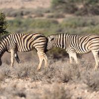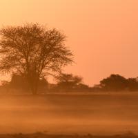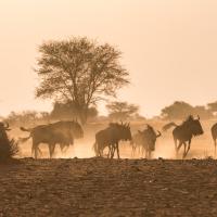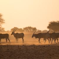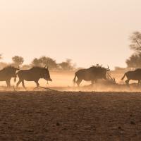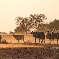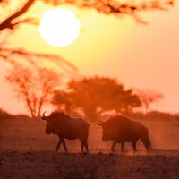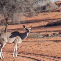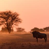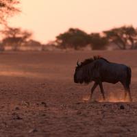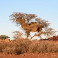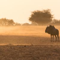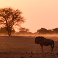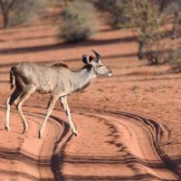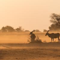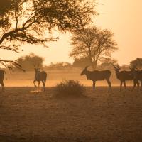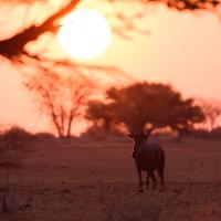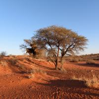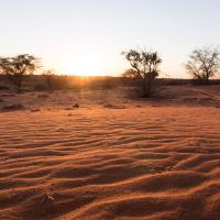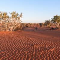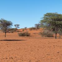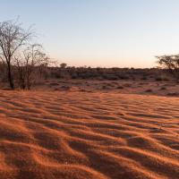 Le Kalahari s'étend sur la Namibie, le Botswana et l'Afrique du Sud. Il est composé de petites dunes recouvertes de quelques buissons.