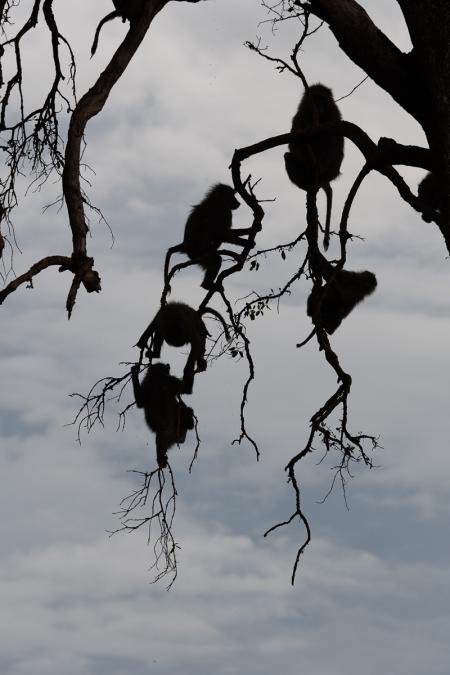 We peeked into the forest to see if Romi the leopard had returned, but to no avail. We see impalas and baboons in a tree,