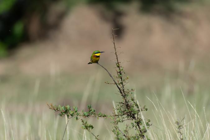 Dwarf bee-eaters rest and take turns on tree branches.