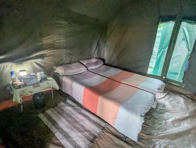 - Points positifs : plus vert et plus arboré que Moremi, quelques paysages sympas avec la rivière, possibilité de faire du hors piste, emplacement du camp très sympa, un éléphant tous les après-midis dans notre camp.