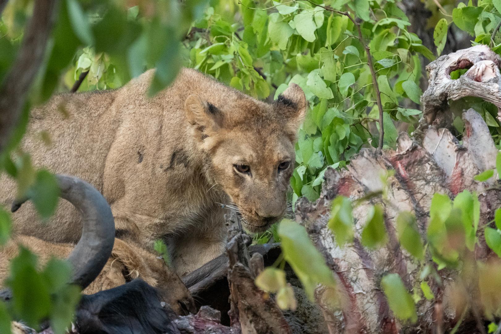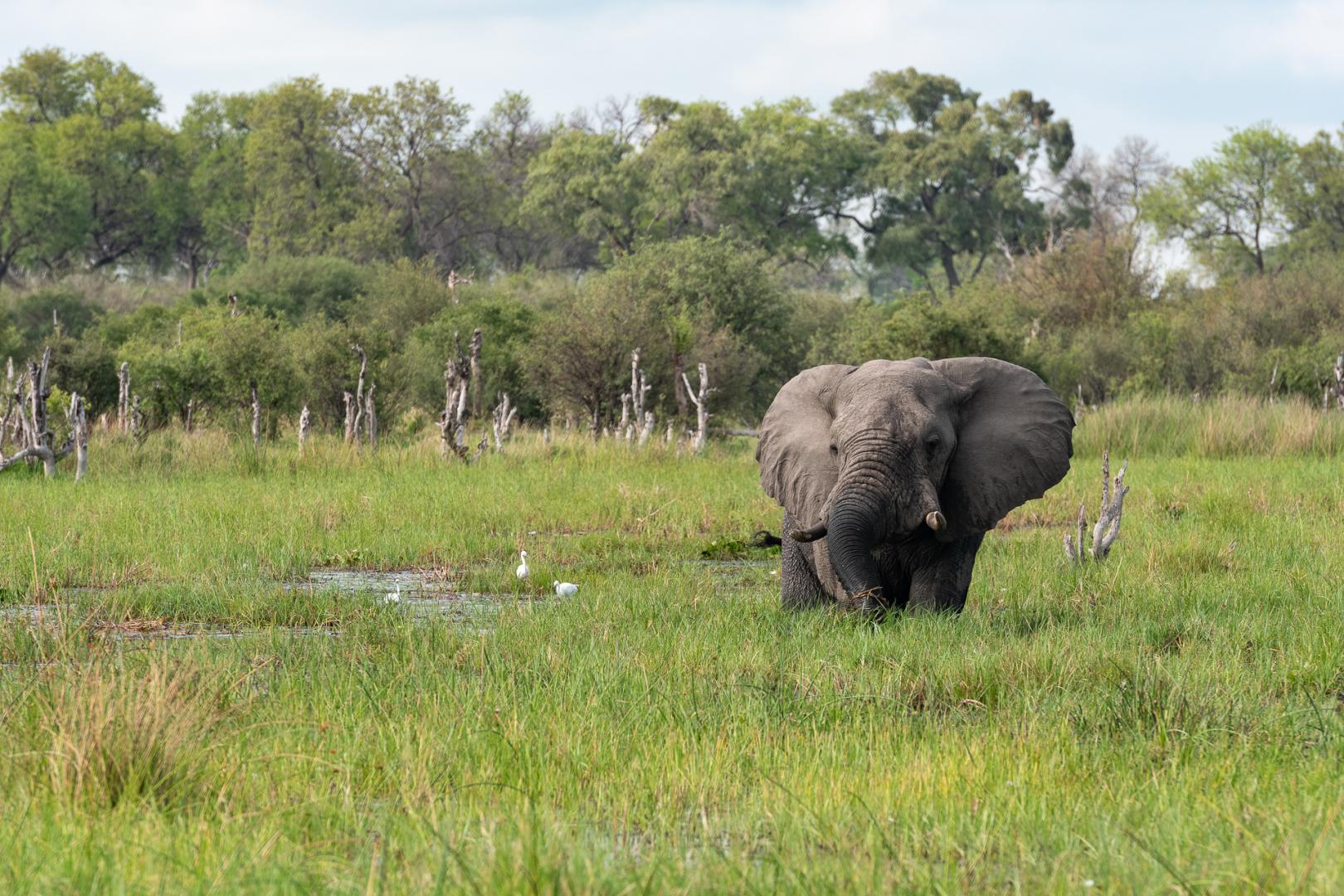 - Positive points : greener and more wooded than Moremi, some nice landscapes with the river, possibility of going off-road, very nice camp location, an elephant every afternoon in our camp.