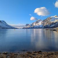 L'île de Kvaloya est accessible par le pont Sandnessund depuis Tromso. Cette île contient tous les ingrédients de la Norvège : fjords, lacs, montagnes, maisons colorées, rennes. Les fjords y sont nombreux et celui qui nous a le plus marqué est Ersfjordbotn. Dans le village du même nom, ne pas manquer le café Bryggejentene, à la fois café/restaurant, boutique de décoration et de souvenirs. Vous pourrez y déguster une des spécialités norvégiennes : le Lutefisk (plat de poisson). Attention, les petits villages au fond des fjords n'ont, pour la plupart, pas de café ou restaurant. Prévoyez à l'avance...