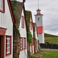 Small site where we can see typical houses of Iceland, made of turb and covered with grass.