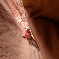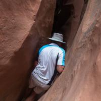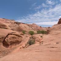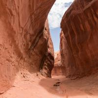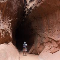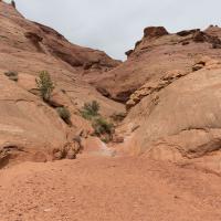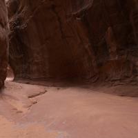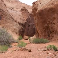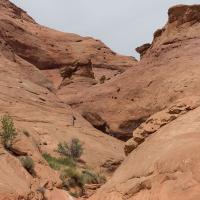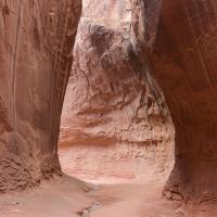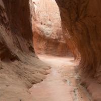 Cette courte randonnée d'environ 4 kms aller-retour, sans aucun dénivelé, débute dans un wash sableux parsemé d'herbes hautes style bambous. Puis vous arrivez face à 2 canyons. Celui de gauche est bloqué par un rocher. Celui de droite est également bloqué par un bloc de pierre mais on peut le contourner en montant sur le slickrock. Du haut, on voit la zone bloqué par la pierre qui a l'air très étroite. Puis vous marchez dans le canyon aux teintes roses qui se rétrécit petit à petit. Enfin, la progression n'est plus possible qu'en marchant sur le côté et sans sac à dos, mais vous n'irez pas loin car c'est vraiment très étroit et il fait noir.