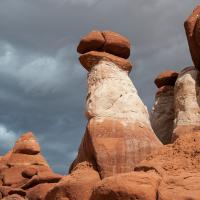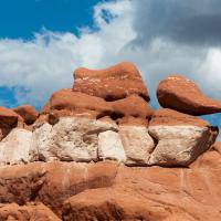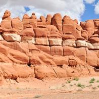Accès : à Hanksville, à partir du croisement entre les routes 24 et 95, prendre la route 95 vers le sud pendant 32,8 kms (soit 20,5 miles) jusqu'à une piste sur la droite. Dès le début de la piste vous verrez 3 panneaux : l'un indiquant "14000", l'autre "Little Egypt Loop" et le troisième donnant les distances pour "North Wash", "Eagle Bench" et "Crescent Creek". Si vous voyez ça, vous êtes sur la bonne piste. Roulez sur 400 mètres avant de prendre à gauche sur cette piste pendant environ 2.5 kms ou jusqu'au panneau indiquant l'accès au site géologique. Il faut alors se garer sur le côté de la route et marcher quelques dizaines de mètres pour se retrouver au milieu des formations rocheuses.