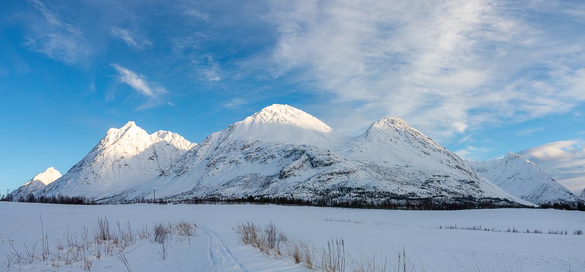 With the Lyngen Alps towering above it, Lyngenfjord is a pretty fjord whose main town is Lyngen, 133 km - 2:15 - east of Tromso (77 km - 1:50 by ferry from Breivikeidet). At the beginning of the fjord, you can see Mount Otertind, a beautiful pointed mountain. Skibotn and Elvevoll are two good places from which to explore the area. Skibotn, in particular, is ideally placed to head for Finland if the weather is better. Skibotn beach is a prime location for viewing the Northern Lights. In fact, many tour operators stop here.