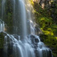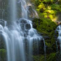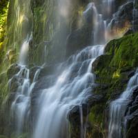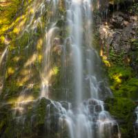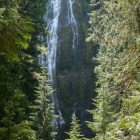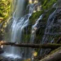 Cascade très réputée en Oregon. Elle est vraiment très large et haute. L'eau ruisselle le long de la roche couverte de mousse. Selon la période, la quantité d'eau varie. Lors de notre voyage de juin 2015, il y avait très peu d'eau. Pas très loin se trouve une autre cascade : Upper Proxy Falls, moins intéressante et pas facile à photographier. Attention, pour voir ces cascades, un permis est nécessaire, disponible pour 5$ au départ du trail ou à la McKenzie Ranger Station sur la route 126. Le trail qui descend à Proxy Falls forme une boucle d'environ 2,7 kms. En faisant la boucle dans le sens des aiguilles d'une montre, la première cascade est upper Proxy falls atteinte après 750 mètres. En reprenant le sentier vous atteindrez le viewpoint sur Proxy Falls après 550 mètres environ. La descente vers Proxy est alors courte (70 mètres) mais abrupte. En repartant et en reprenant le sentier dans le sens des aiguilles d'une montre vous retournerez au parking en 1,3 kms.