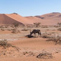 Le Parc National Namib-Naukluft fondé en 1907 est situé au sud-ouest de la Namibie. Il comprend les montagnes Naukluft et le désert du Namib. Ce dernier est un des plus anciens déserts du monde et ses dunes sont les plus hautes du monde avec près de 300 mètres pour certaines. C'est aussi un des plus grand parc national du monde.