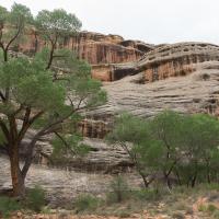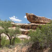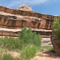 La descente pour Sipapu Bridge est fun avec des passages sur des échelles et des troncs d’arbres. Le sentier passe ensuite devant des ruines qu'on aperçoit au loin puis arrive à Kachina Bridge. Le trail jusqu’au 3ème pont, Owachomo Bridge, est plus monotone et assez long d'autant qu'il n'y a pas grand chose à voir. Avant d'arriver à Owachomo, ça monte un peu sous une alcôve, idéale pour le pique-nique. Après ce dernier pont, le sentier rattrape Mesa Trail pour revenir à Sipapu. Et cette partie dans des bosquets est très ennuyeuse et longue, sans aucun intérêt.