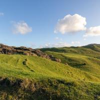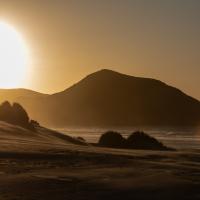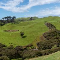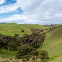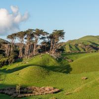 Puponga est le nom donné à la zone cotière comprise entre Farewell Spit et le Sud de Wharariki Beach. On traverse cette partie pour rejoindre la plage de Wharariki depuis le parking. Ce sont de magnifiques collines où paissent tranquillement des troupeaux de moutons. Elles prennent de jolies couleurs au soleil couchant.