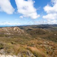 Un petit sentier monte tranquillement vers un phare et un point de vue sur la Mer de Tasman. Celui-ci continue vers un deuxième point de vue, cette fois sur Farewell Spit et sa longue bande de dunes et plages, "le bec de kiwi" de Golden Bay.