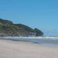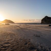 Accès : depuis Wharariki Road, prendre Freeman Access et se garer sur le parking de Triangle Flat.