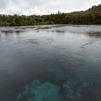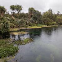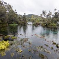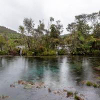 Les Pupu Springs sont des sources sacrées pour les Maoris que l'on peut visiter sur des pontons en bois. Ces eaux transparentes sont les secondes eaux les plus pures du monde. Dommage que la météo n'était pas de la partie lors de notre passage.