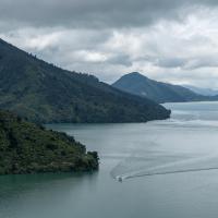 Lors de l'arrivée en ferry sur l'Ile du Sud, on a un petit aperçu des Malborough Sounds : îles éparpillées et fjords au Nord de l'Ile du Sud. Il est possible d'explorer cette zone par des excursions en bateau, kayak... En ce qui nous concerne, nous avons simplement emprunté en voiture la Queen Charlotte Drive, la route qui longe la côte entre Picton et Havelock. Les quelques points de vue accessibles offrent de jolis panoramas sur les montagnes et les fjords.