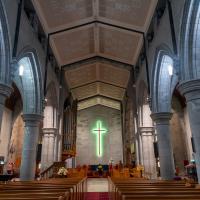 La cathédrale Christ Church de Nelson (seul arrêt dans cette ville lors de notre séjour) a une architecture particulière ! De style gothique, son clocher monte à 35m de haut. Depuis le parking, on dirait qu'il manque quelque chose ! Mais lorsqu'on en fait le tour, le clocher à l'arrière paraît démesuré !