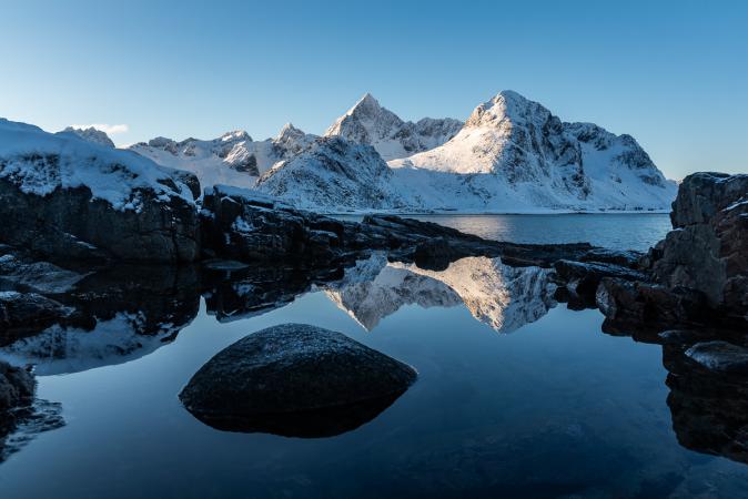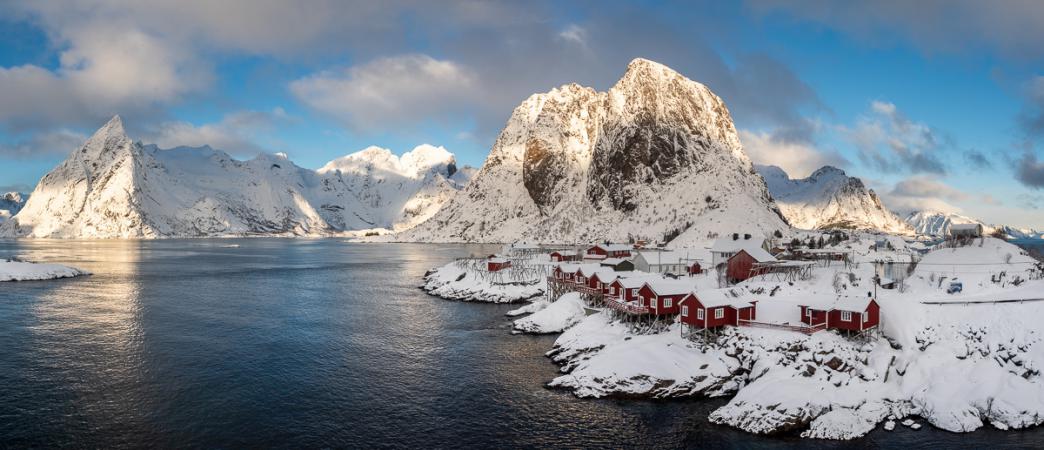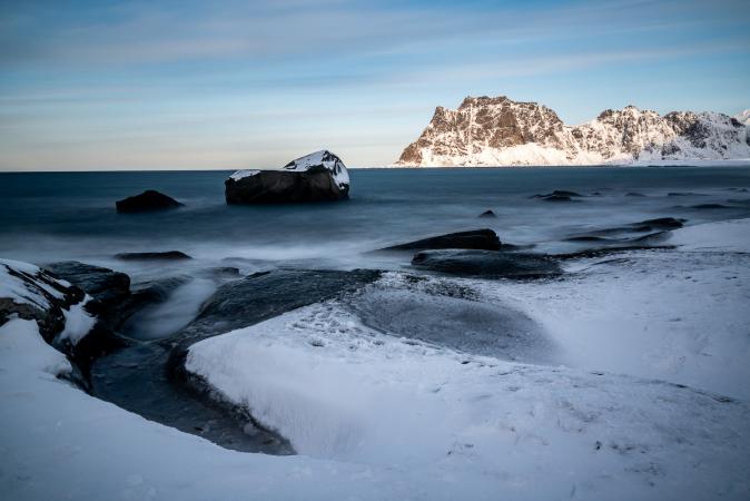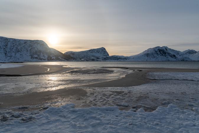 Les montagnes enneigées, les lacs gelés, les fjords glacés et craquelés sont magnifiques. Tout cela embellie par le soleil sur quelques journées. Pas de météo vraiment pourrie, on a eu du soleil, des nuages et des chutes de neige. Les températures très froides la première semaine, jusqu'à -20°, se sont adoucies la seconde semaine. Nous avons beaucoup aimé les Lofoten.