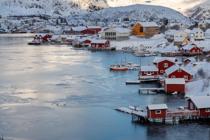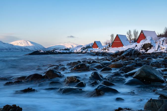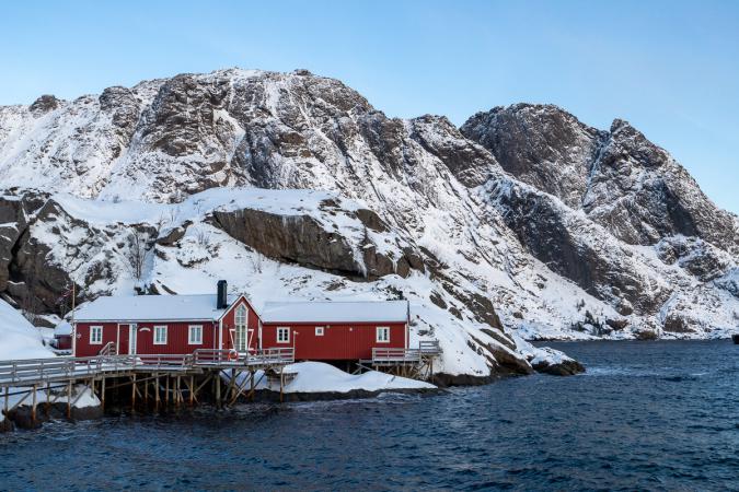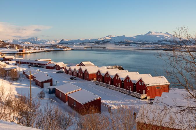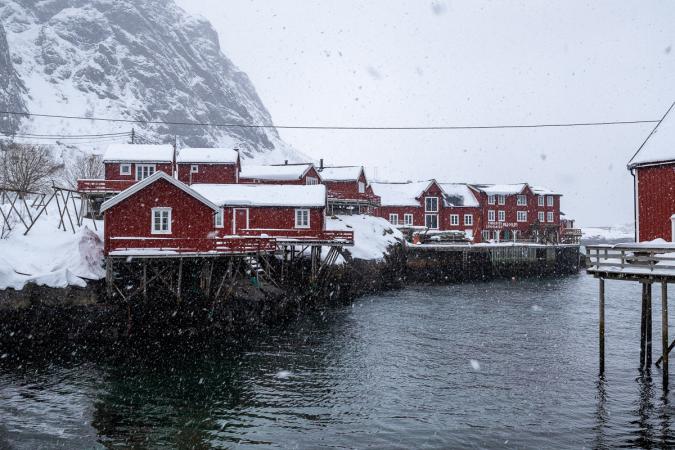 Plus loin, à Lattervikveien, il y a de jolies cabanes rouges de pêcheurs. Avec un petit coup de soleil, c'est chouette.
