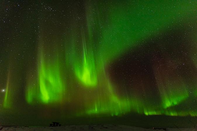Côté aurores boréales, pas de grosse activité. Sur les quatre soirs d'observation, les lumières vertes n'étaient pas très intenses à part une fois où elles étaient légèrement plus fortes mais ce n'était pas "fifou" (comme dirait Stéphane). Je pense que ce sera difficile de revoir le spectacle grandiose du vert et du rose que nous avions eu en 2022.
