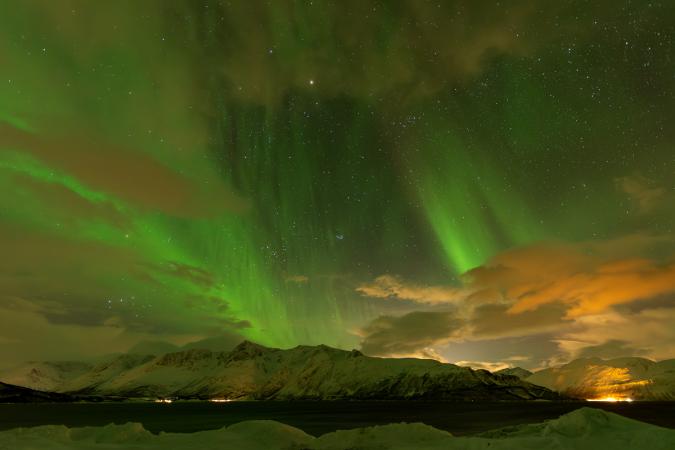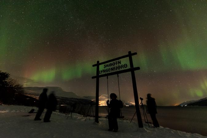 Retour à la maison vers 14h30. Goûter. Apéro à 17h45. Dîner vers 18h30. On enchaîne ! On part à la chasse aux aurores à 19h40 en direction de Lakselvbuktvegen. C'est complètement bouché. On fait demi tour. On aperçoit quelques étoiles, on file vers la plage de Skibotn. Il y a quelques beaux drapés d’aurores mais c'est pas violent. Il fait -9°.