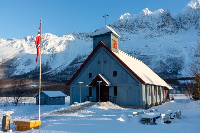Il fait -20°. On reprend la route vers Jovik et on passe devant une petite église.