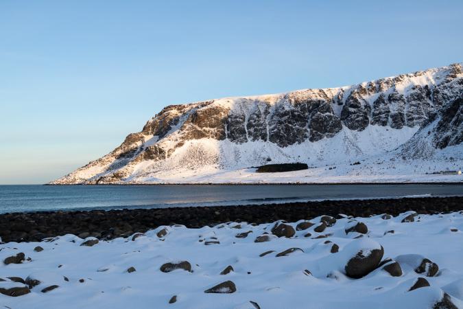 Lundi 12 février : départ à 9h15 direction Unstad par -2°. Il fait du vent. La vue est moyenne.