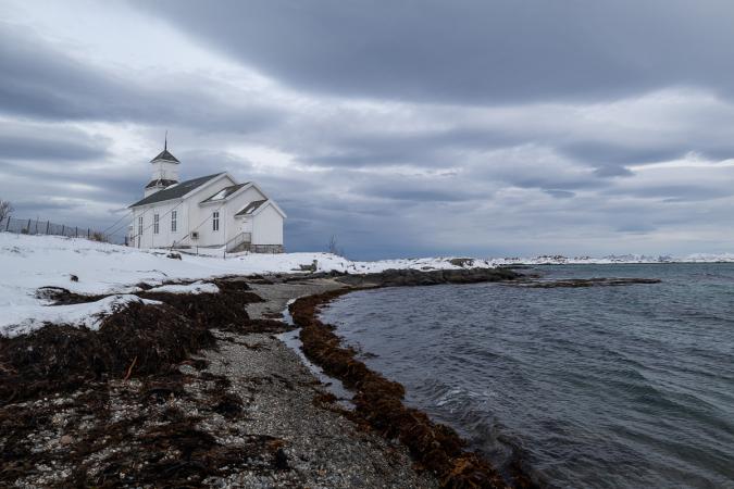 On démarre notre journée à 11h25 ! On commence par aller voir l'église de Gimsoy. Petite chapelle blanche au bord de l'eau.
