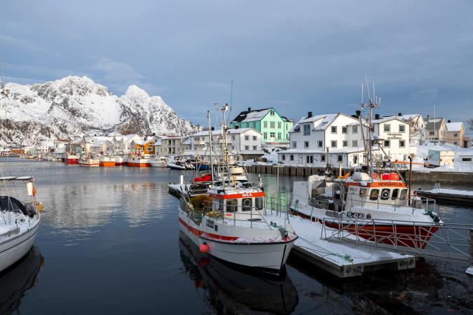 Trois ou quatre poussées et ça le fait. Ensuite on va à Nusfjord, petit village de pêcheurs transformé en musée avec ses maisons rouges et jaunes sur pilotis.