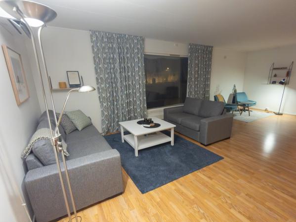 On file faire les courses dans un SuperSpar à côté de l'aéroport. A 17h25, on part vers la maison à Elvevoll. On arrive à 19h05. L'intérieur est allumé, le salon est grand mais les chambres pas trop.