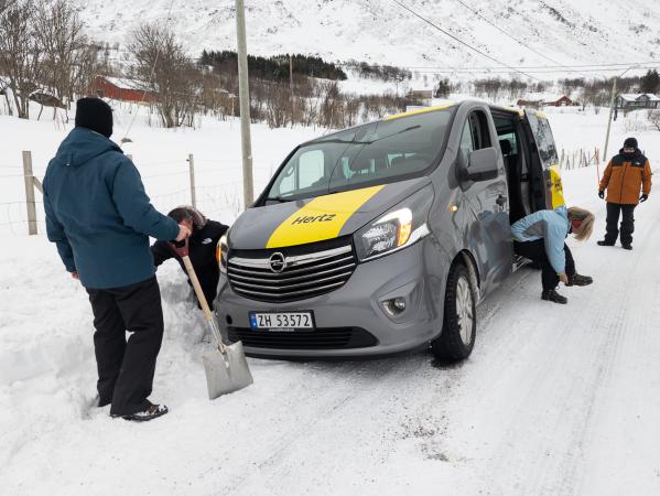 Samedi 3 février : debout à 6h00. Petit déjeuner copieux. Navette à 7h30. En 10 min, on est à l'aéroport. Dépose au 2B, il faut tout remonter jusqu’au 2F. On retrouve Martine qui est déjà arrivée. Étienne, Stéphane et Sophie arrivent vers 8h45. On fait les étiquettes des bagages et on les déposent sur les tapis. Faut tout faire soi-même ! A 9h15, on s'installe à la porte d'embarquement. Décollage prévu à 10h55. Embarquement à 10h20. On est bloqué à la porte ! Départ en retard à 11h20. Décollage à 11h30. Atterrissage à 15h50 à Tromso. Attente dans l'avion car un autre occupe notre place. Il neige et il y en a par terre. Il est annoncé -3°. Vers 15h45, on va au Rental Car pour récupérer la voiture. 16h00 on cherche la voiture ! Elle est en sous sol alors qu'on la cherchait dehors. C'est une Opel Vivaro (103 388 km).
