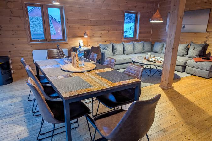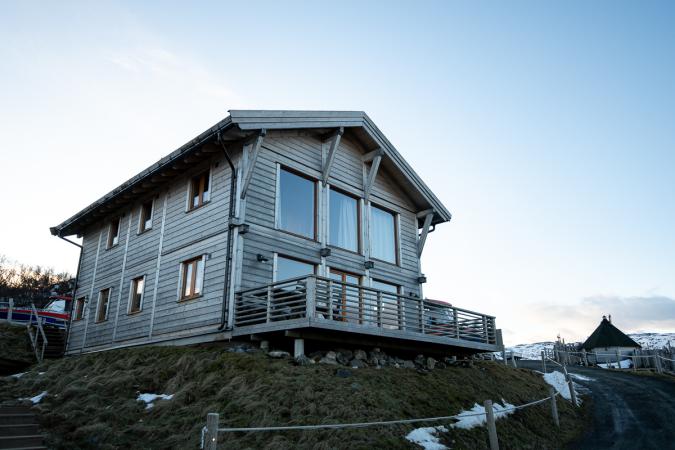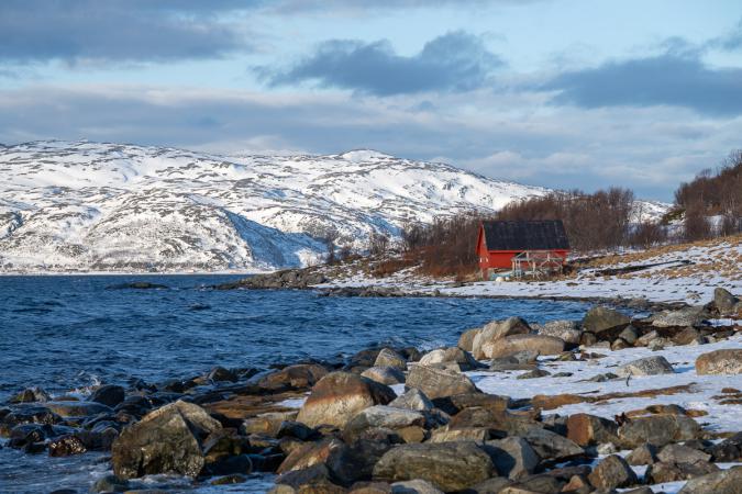 On n’a pas pu avoir de mini-bus car il n’y en avait plus lors de notre réservation. Direction Tromso pour déjeuner de pizzas à 12h45. On va ensuite faire le plein de courses. Vers 14h30, on prend la route pour rejoindre notre hébergement sur l'île de Ringvassoya. Il nous faut 1h30. Il y a de la neige partout mais les routes sont très bien dégagées. C’est très isolé sur une île pas très touristique. On arrive à la location à Mikkelvik Brygge vers 16h00. Il y a plusieurs maisons de location au bord du fjord avec ponton et spa, sauna.