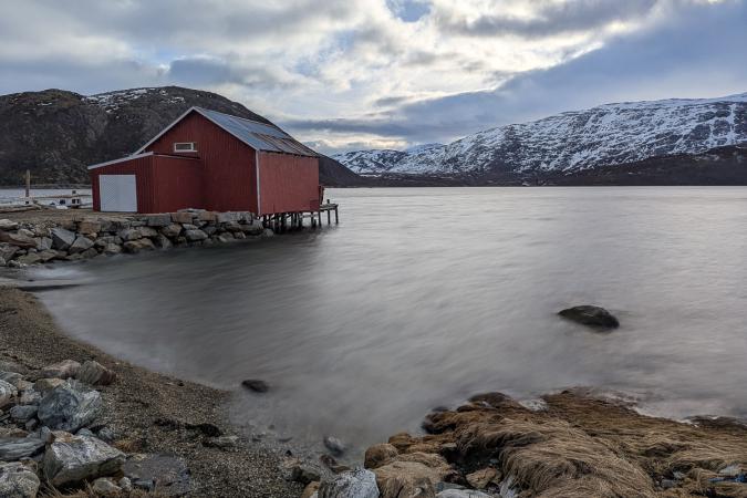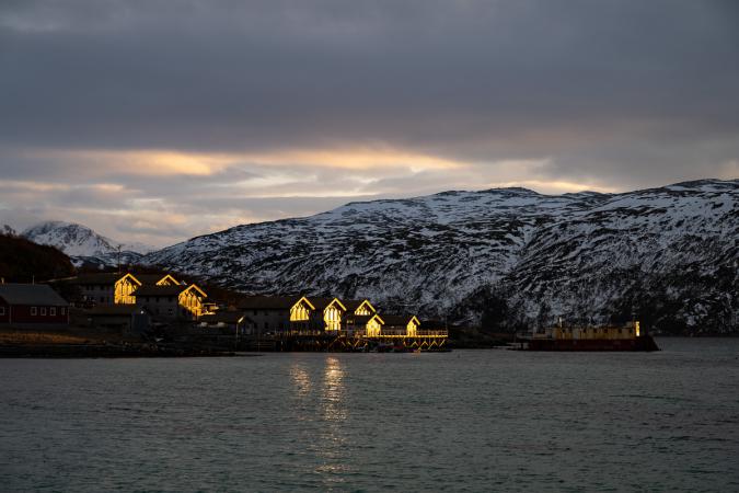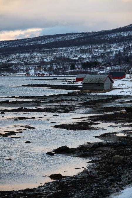 A 14h00, on file ensuite à Hansnes au Direktor’n Bistro pour manger des frites et boire des chocolats chauds. On continue sur cette route jusqu'à un cul de sac avec des arrêts photos sur le fjord.