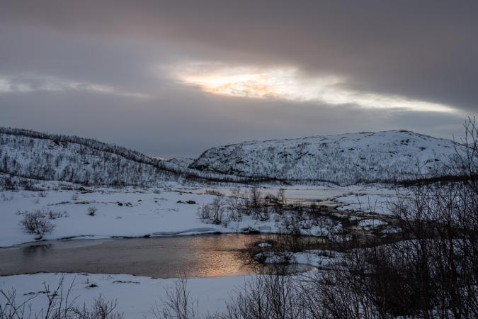 On en a vu plusieurs ! On s’arrête faire des photos du coucher de soleil sur le lac Skogsfjordvatnet.