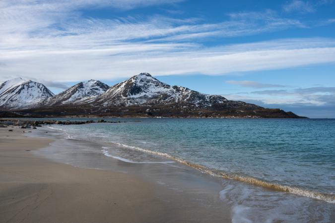C’est toujours aussi beau. On file jusqu'à Tromvik. On s’arrête sur une petite plage qui rappelle les tropiques avec ses eaux turquoises.