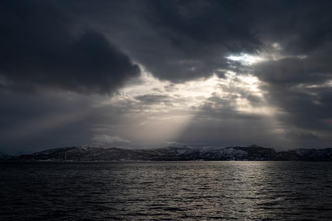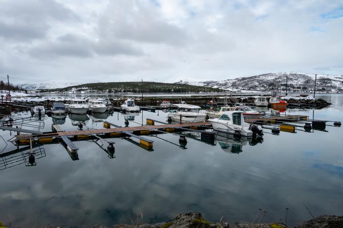 Dimanche 8 mars : debout vers 8h00. Le ciel est couvert mais avec quelques trouées et il fait 6°. Départ en balade vers 11h00, comme d’habitude le long des fjords pour faire des photos des paysages. A cette saison, pas facile de faire des randos ; ce n'est déjà pas facile de se garer le long des routes pour faire des arrêts photos car les parkings et les accotements ne sont pas toujours déneigés, ou alors il n’y a carrément pas de parking. On part en direction de l'Ouest vers Mestervik puis on bifurque vers le Nord le long du fjord Malangen.