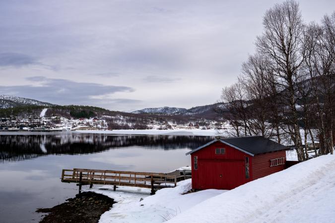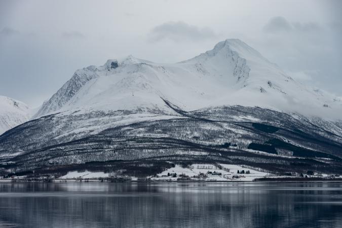 C'est magnifique. Et ces reflets, waouh ! On reste un moment. Puis, en continuant le long de Balsfjord, en remontant vers le Nord, on s’arrête à Laksvatnet, le lac est gelé.